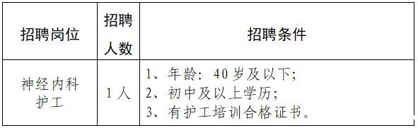 根据医院业务发展需求,我院神经内科需招聘劳务派遣工作人员1名,具体招聘条件如下: